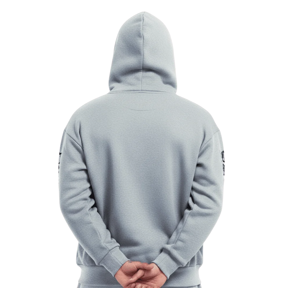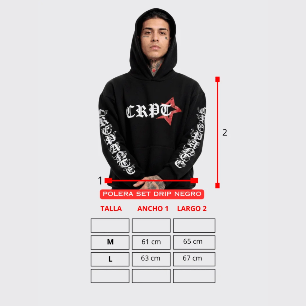 Polera corte zeta, con un corte intermedio entre polera Oversize y la Polera Boxy Fit, con una capucha mas grande y doble forro, con un despunte visible en el bolsillo frontal como detalle de costura, en la parte interna lleva Tuil con etiqueta de la marca, lleva un estampado resaltante en ambas mangas y uno en el pecho como toque final.